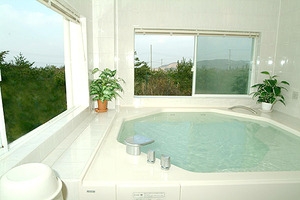 在来工法の浴室で